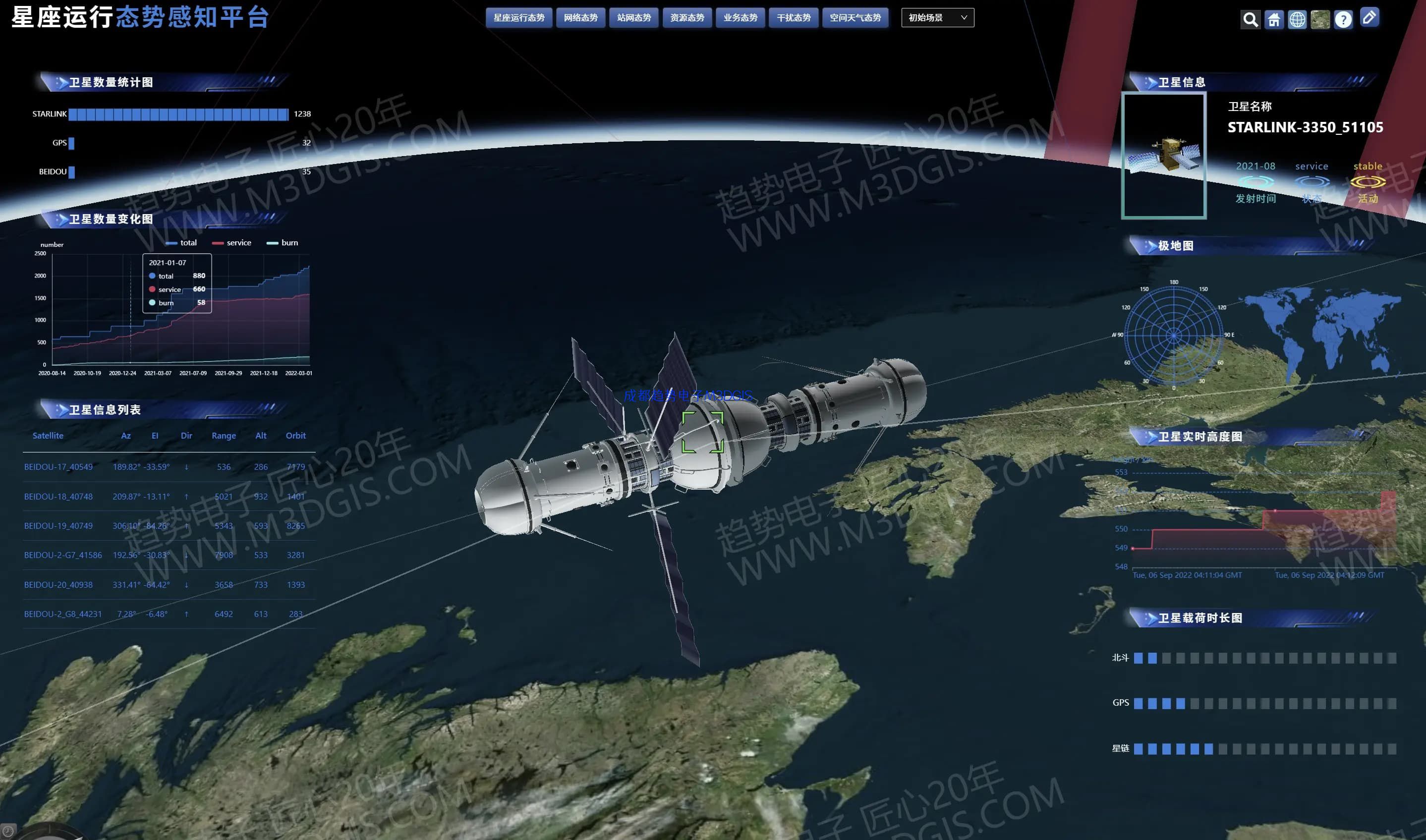 3.点击卫星可展示卫星环形轨迹以及锥形扫描柱