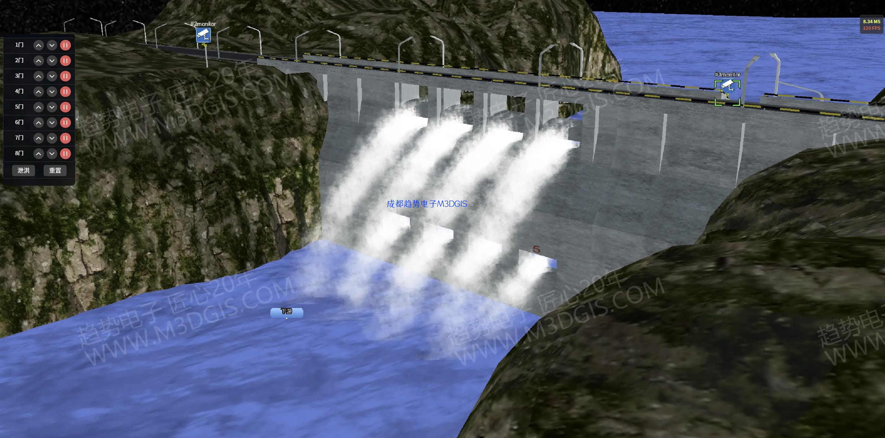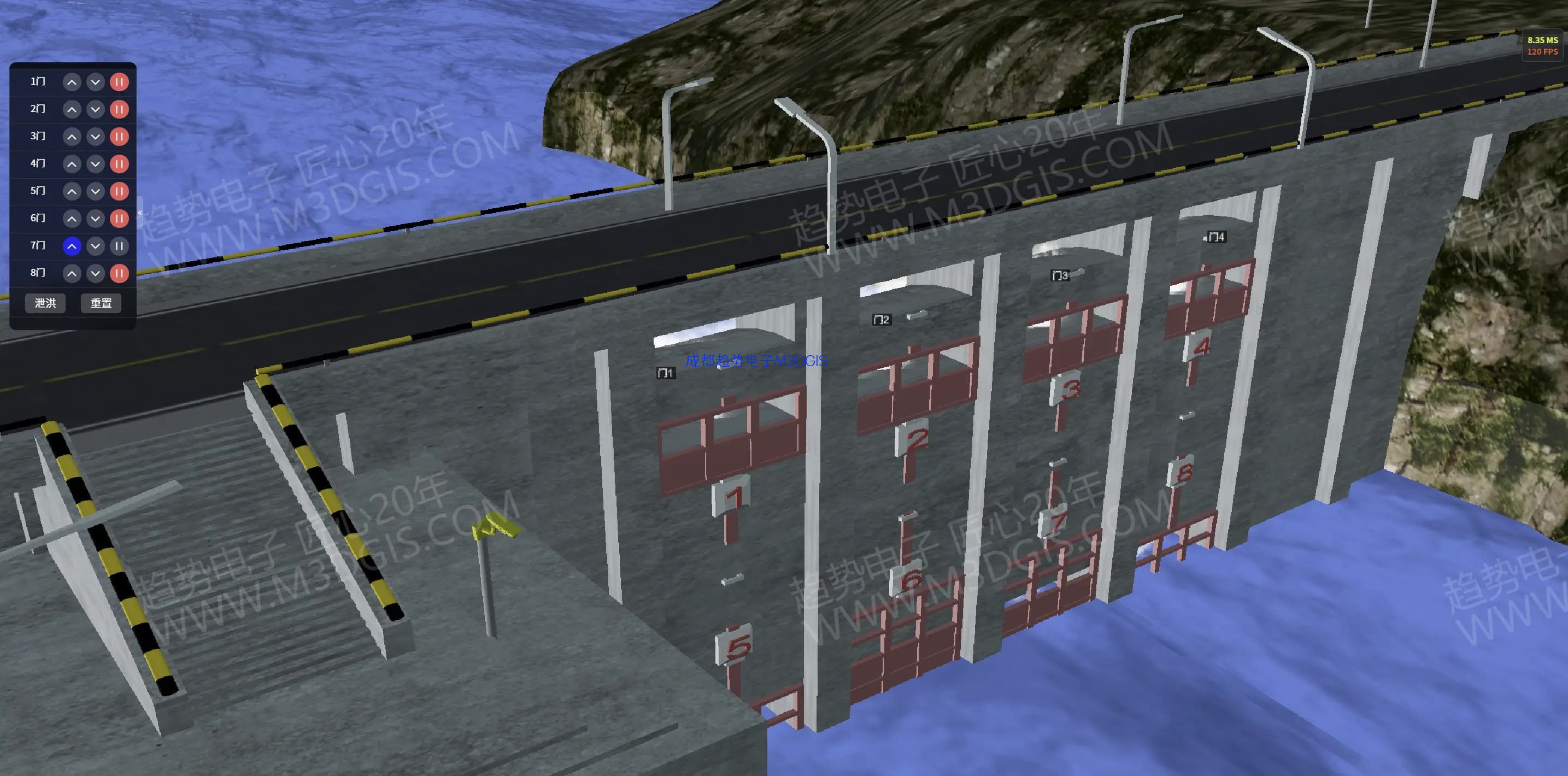 融合BIM与三维地理信息,精准复现大坝结构、地形地貌与水体动态,支持多角度交互式查看。