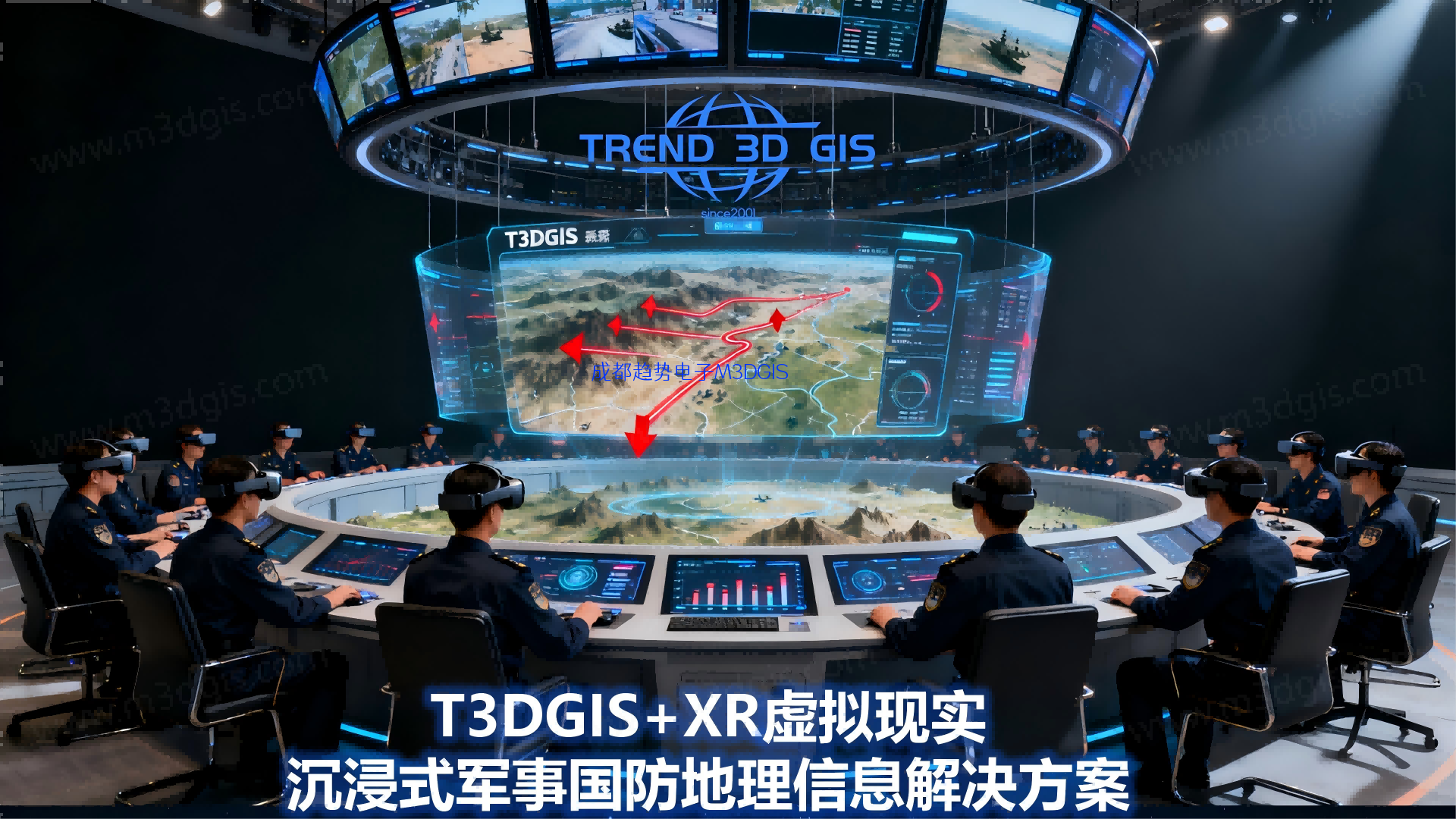 ​​T3DGIS+XR虚拟现实:T3DGIS 军事地理信息系统与 XR技术深度耦合,构建 “虚实共生、动态映射” 的沉浸式战场地理信息平台。依托头戴式 XR (VR/AR/MR)终端,可实时接入可交互、可漫游、可推演的三维战场环境,为作战指挥决策、战术模拟训练等核心军事场景,提供具有态势感知优势的地理信息支撑